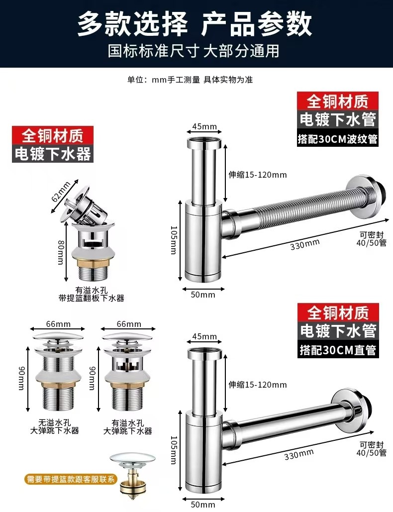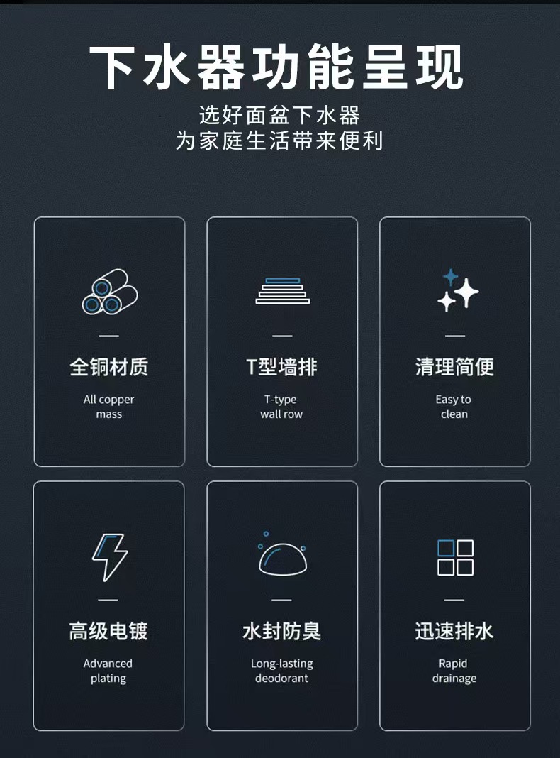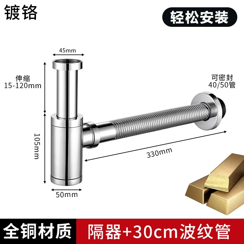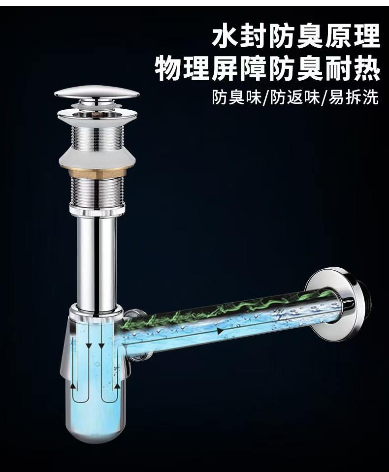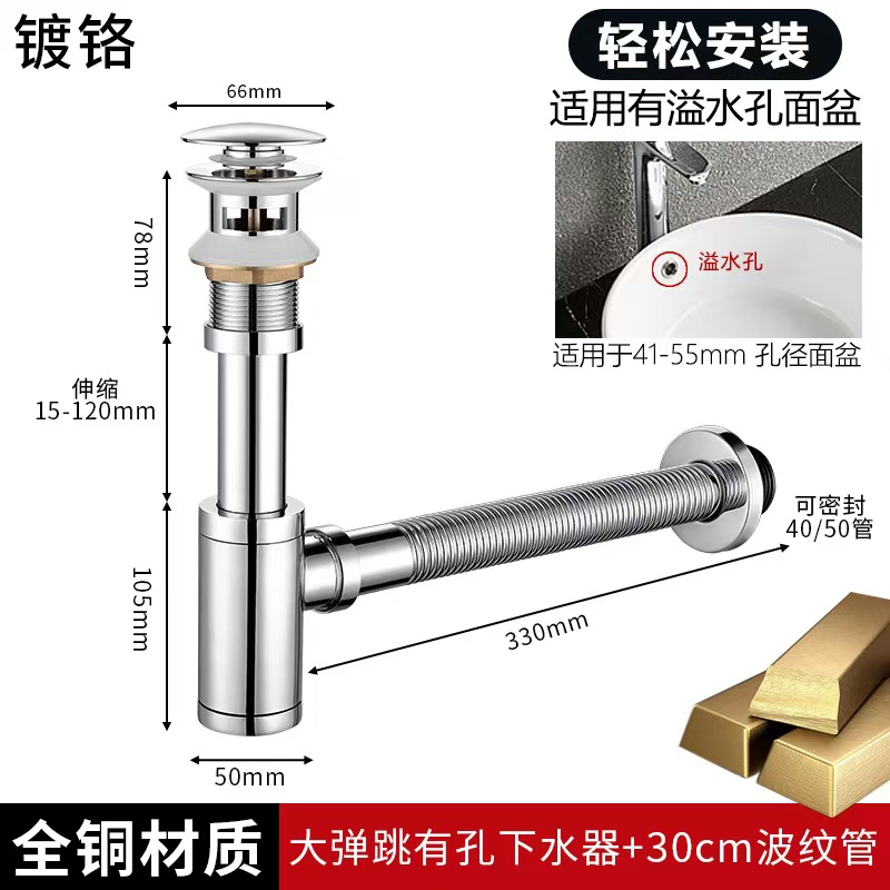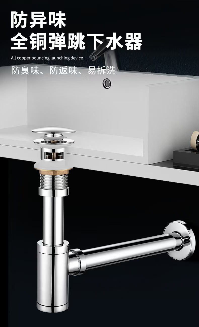 防异味全铜弹跳下水器